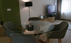 Az apartmanok egy 12 lakásos társasház 8 lakással rendelkező szárnyában, egymás mellett találhatók. A házban többnyire idősebb lakók élnek, ebből adódóan a társasház csendes, családias hangulatú, így reméljük, ez vendégeink kényelmét és kikapcsolódását is segíti majd.
